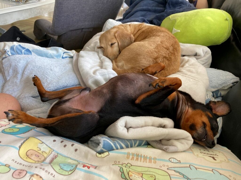 疲れ果て寝ている愛犬です (;^ω^)