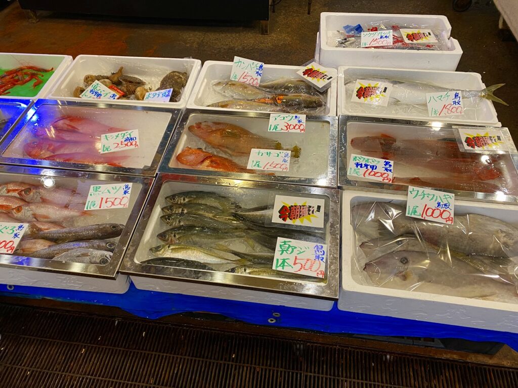 « 怪しい荷物! 遠距離打合せ » 魚介類安い! 株式会社アスクの中村です 先日鳥取県を訪れた際に魚市場へ行ったのですが 販売をしている魚介類の大きさと安さに驚きました ( ゚Д゚) こちらのハマチ一本1800円です (#^.^#) 妻が小さいのか?!魚が大きいのか?! 魚が大きかったです・・・いや・・どちらも正解かな?! (;^ω^)/