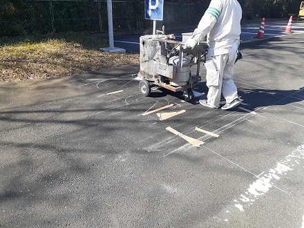 本日は、某学校にて施工致しました白線引き工事を紹介致します