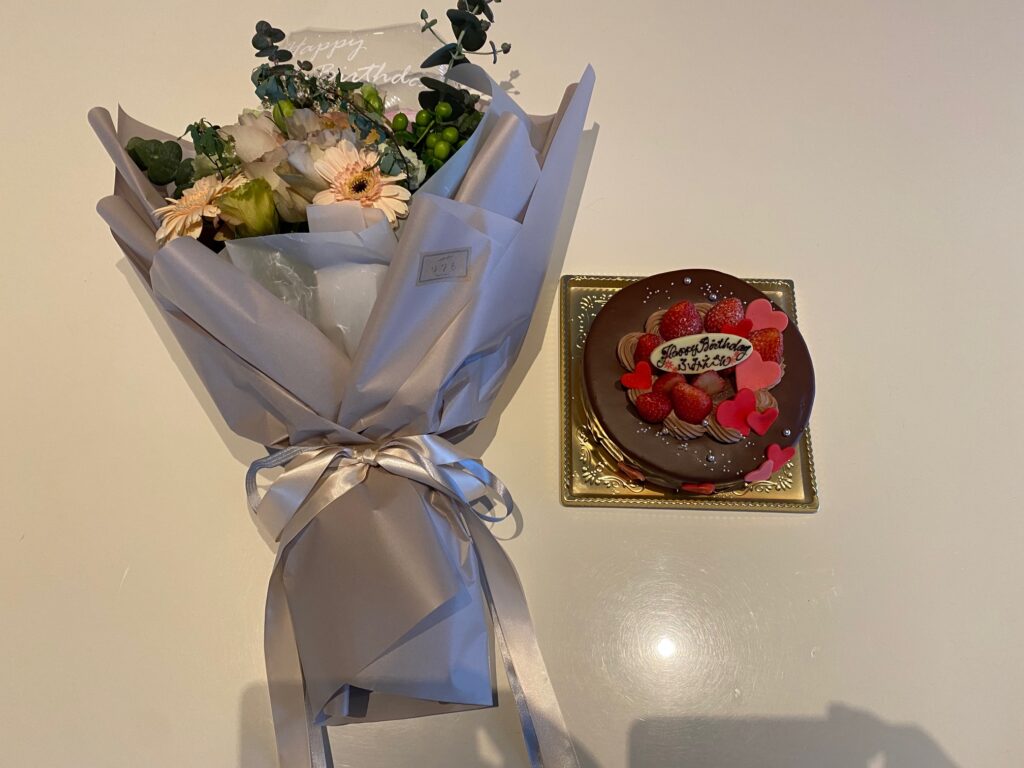 社員一同よりお花とケーキをいただきました (#^.^#)