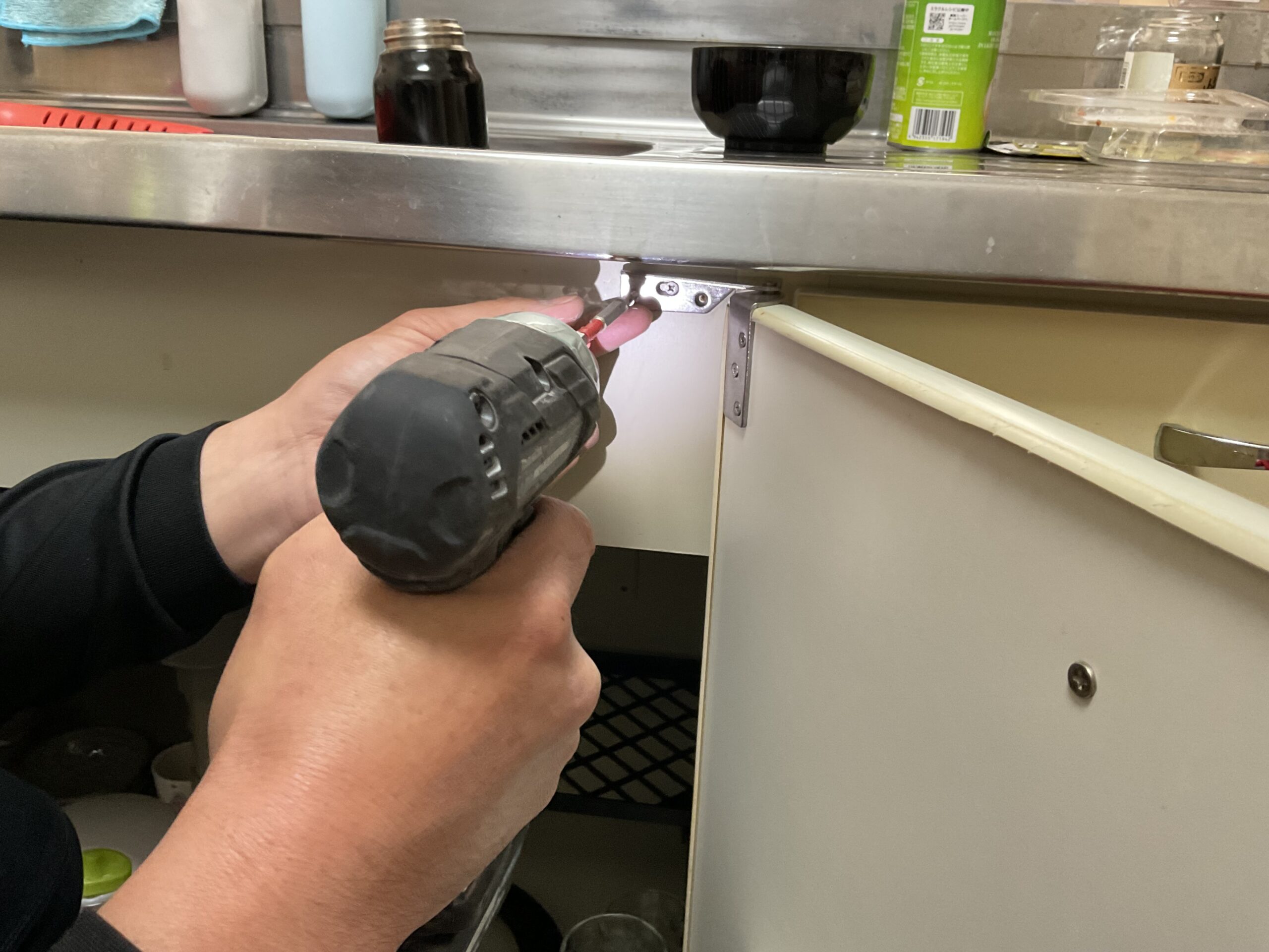 流し台扉丁番交換工事
