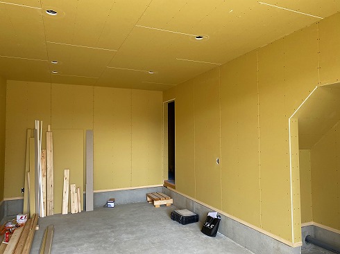 東浪見アパート建築は、内装ボード貼り工事進行中です