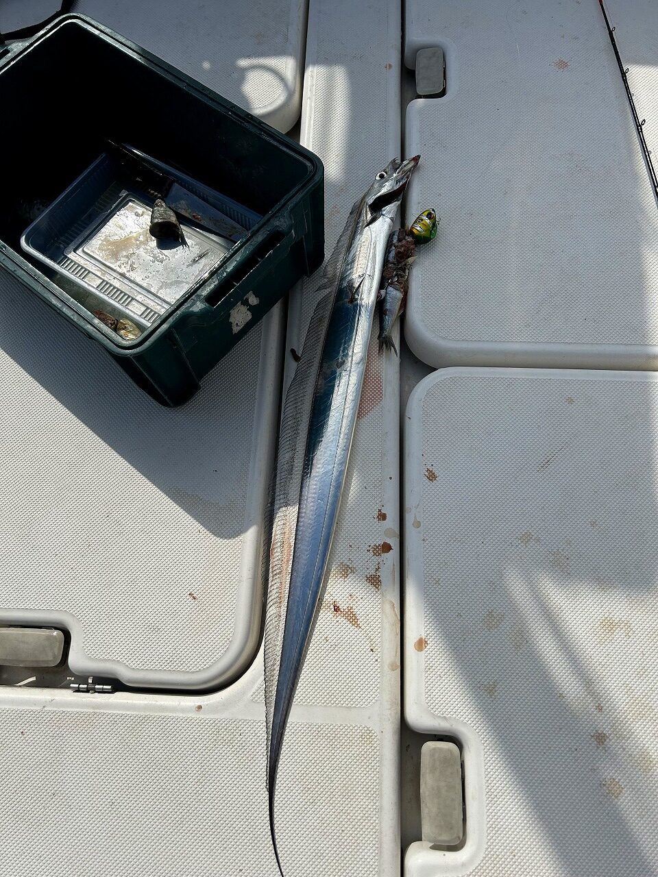 « 洋便器化工事 水栓交換工事 » 太刀魚釣り 株式会社アスクの中村です 先日協力会社さんの所有するボートで釣りに連れて行っていただきました あいにく風が強く2~3時間程度の釣行となりましたが 人生初の釣種となる「太刀魚」釣で、なんとか1匹釣ることができました (;^ω^) ということで、おいしく夕御飯でいただきました (#^.^#)